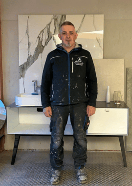 Ich bin auf Paolo Rocchesini aufgrund einer Empfehlung aufmerksam geworden. Der Weg nach Herford war ihm nicht zu weit. Wir waren uns auf Anhieb sympathisch und er hat sehr schnell verstanden, wie ich mir die Verlegung der Fliesen im Badezimmer vorstelle. Ich habe hohe Ansprüche und er konnte sie stets erfüllen und hat immer mitgedacht. Bei Herausforderungen wurde immer in meinem Sinne gehandelt, getreu dem Motto "Geht nicht, gibt's nicht". Mir war z.B. wichtig, dass alle Ecken auf Gehrung verlegt werden. Dieses hat er wirklich perfekt hinbekommen! Ich bin sehr zufrieden und kann Paolo ausnahmslos weiterempfehlen.
